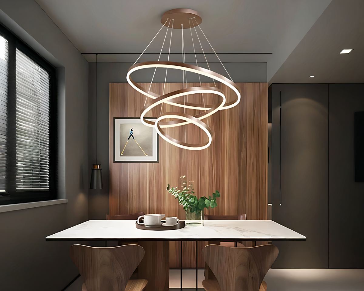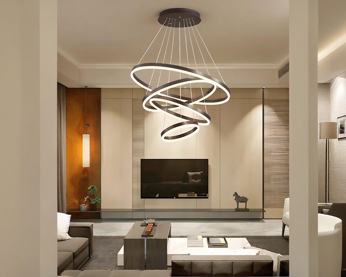J'adore ce lustre avec ses cercles suspendus. Le design est moderne et รฉlรฉgant !
