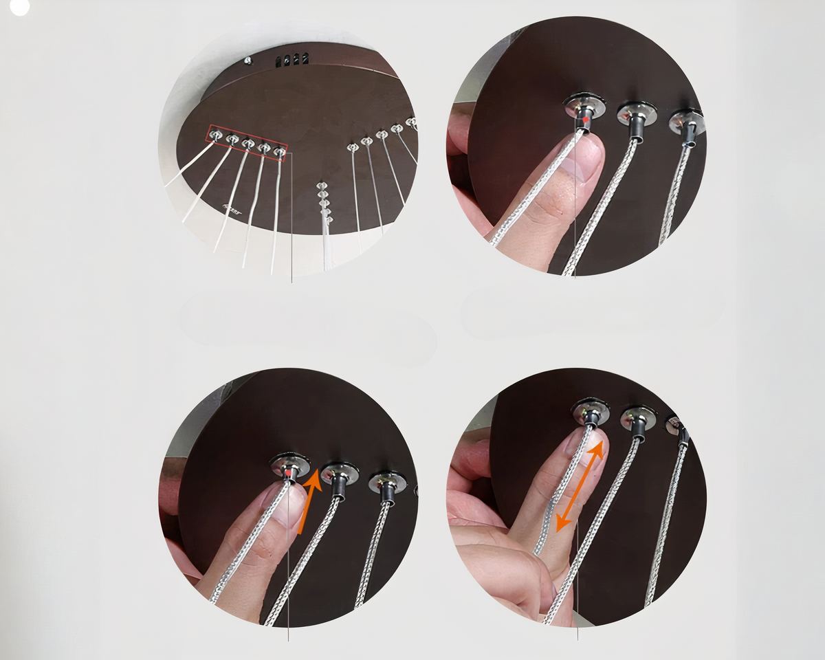 Ce grand lustre offre la possibilitรฉ de personnaliser son agencement avec ses cercles suspendus, que vous pouvez moduler ร votre guise. Grรขce ร ses cรขbles rรฉglables jusqu'ร 2 m, crรฉez une composition harmonieuse et originale qui s'adapte parfaitement ร votre espace.