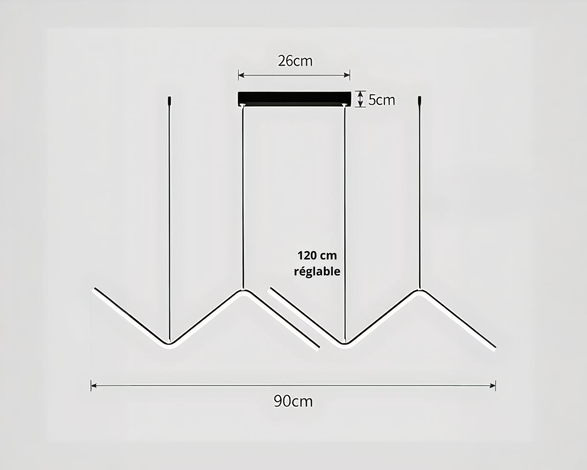 Notre lustre suspendu réinvente l'éclairage avec son design minimaliste et géométrique. Ses lignes aériennes en font une pièce maîtresse dans votre salon, salle à manger, cuisine ou même votre bureau.