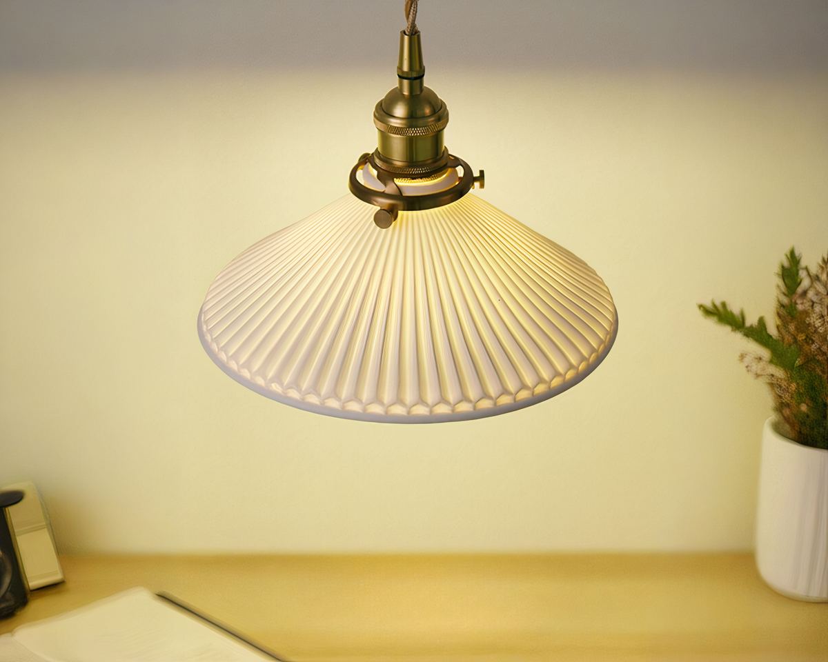 Ces lustres sont bien plus qu’une simple source d’éclairage. Chaque pièce est conçue avec soin, offrant une véritable immersion dans l’élégance d’un autre temps. Le contraste entre la céramique et le laiton poli crée un équilibre parfait, apportant du caractère sans alourdir la pièce.