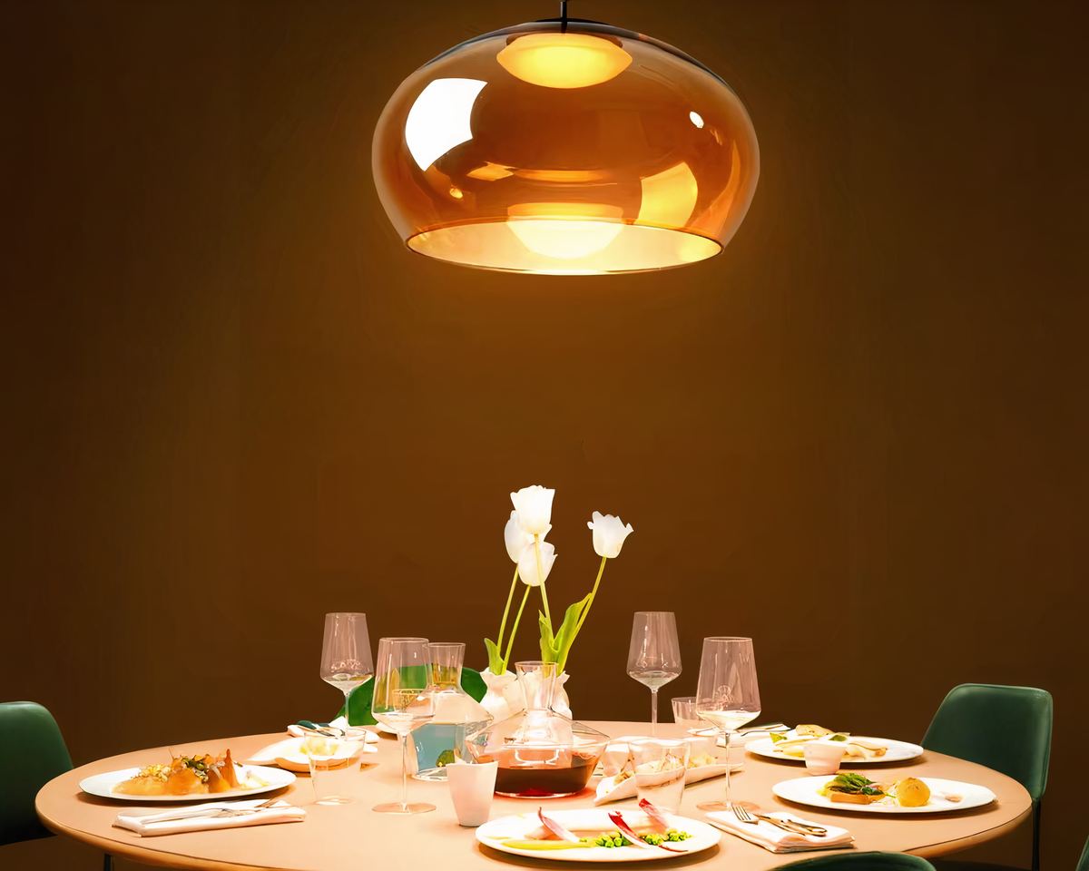 Le verre ambré de ce luminaire diffuse une lumière chaude et apaisante qui sublime instantanément n’importe quelle pièce. Que ce soit dans un salon ou une salle à manger, son design minimaliste et élégant attire tous les regards et se fond dans tous les styles.