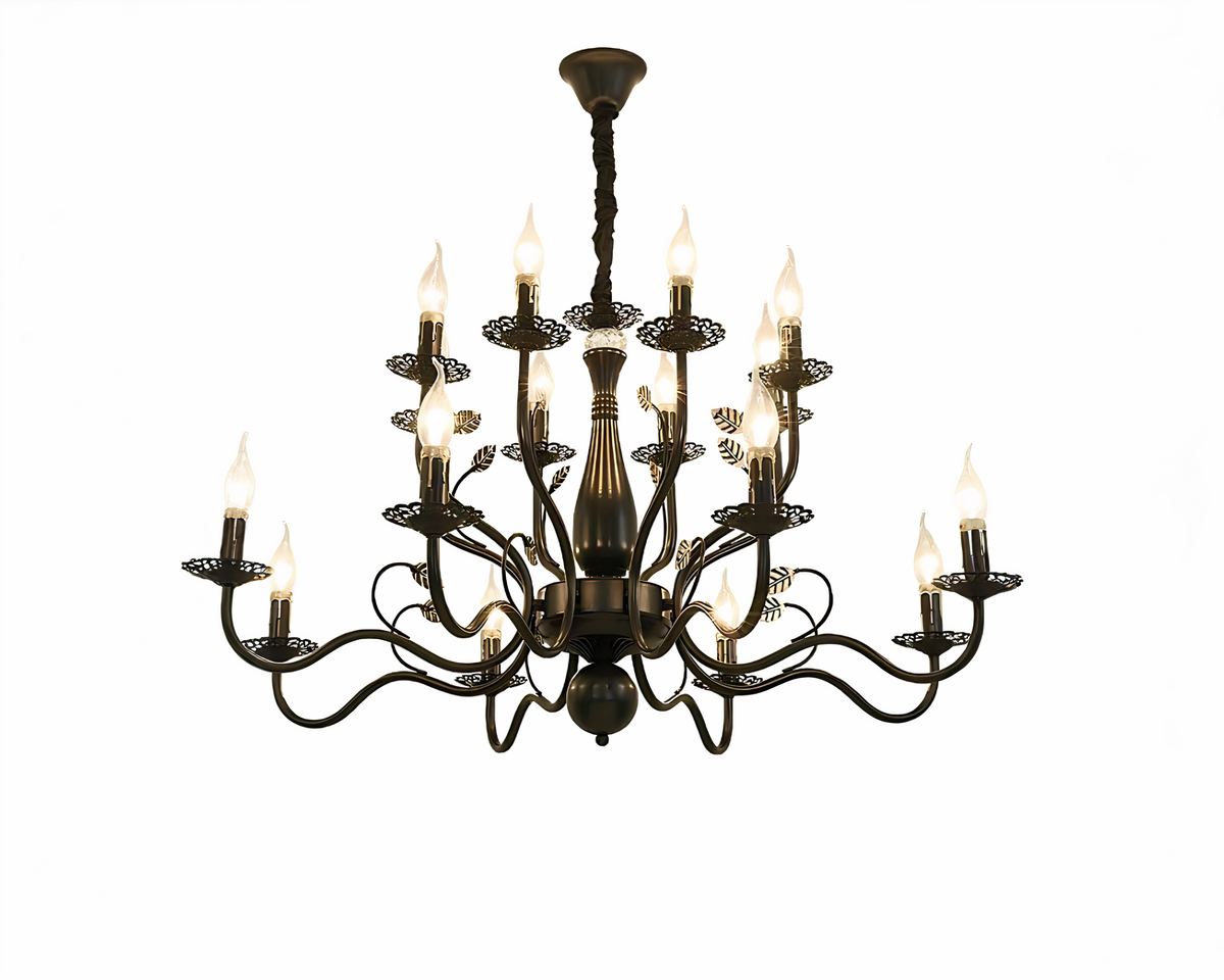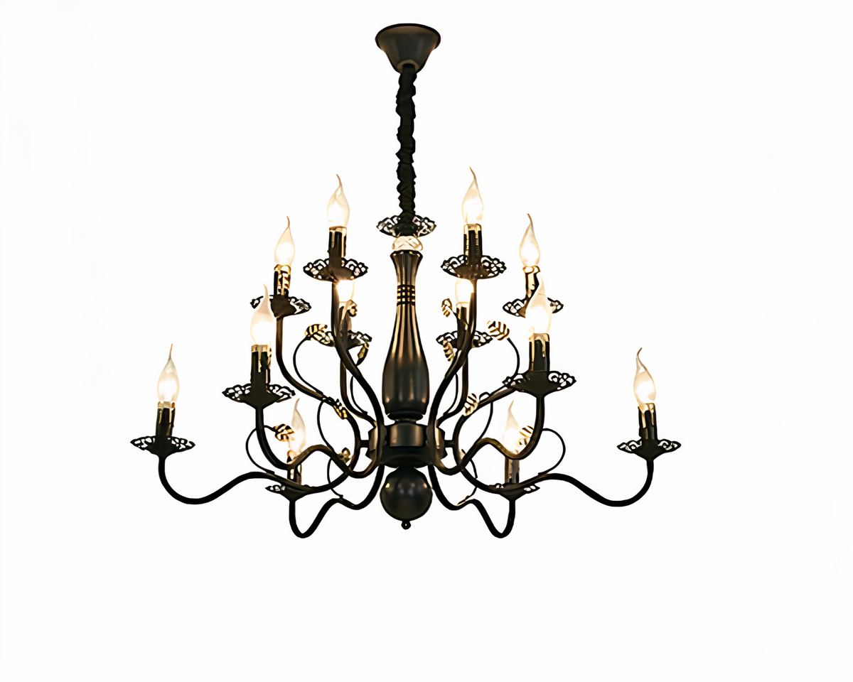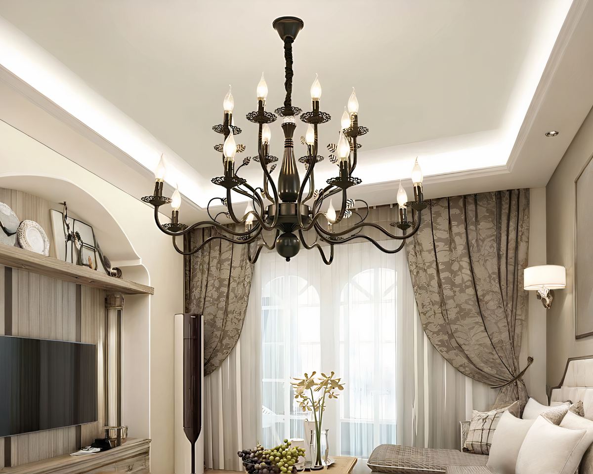 Le lustre baroque majestueux en fer forgé transporte votre intérieur dans une autre époque, où chaque détail était minutieusement sculpté pour sublimer les plus somptueux palais. Ses courbes en fer forgé dessinent dans l’air un ballet majestueux, où chaque lumière semble flotter avec grâce, évoquant la lueur douce et rassurante des chandeliers d’antan.