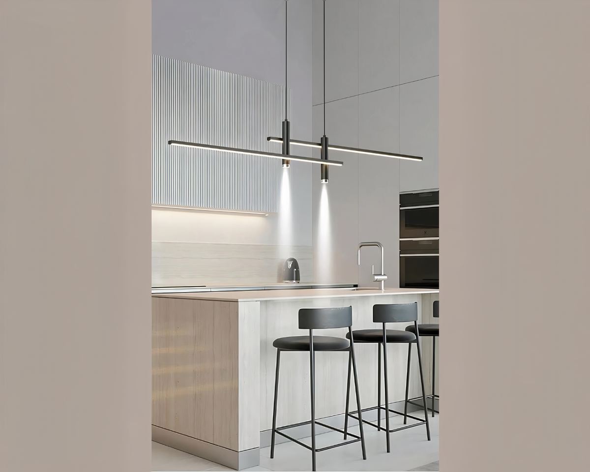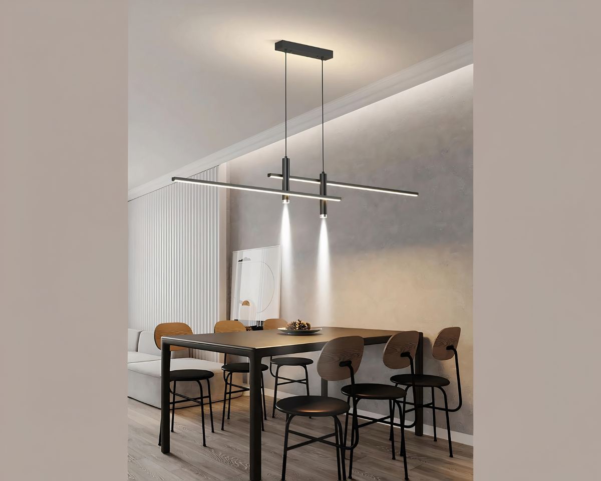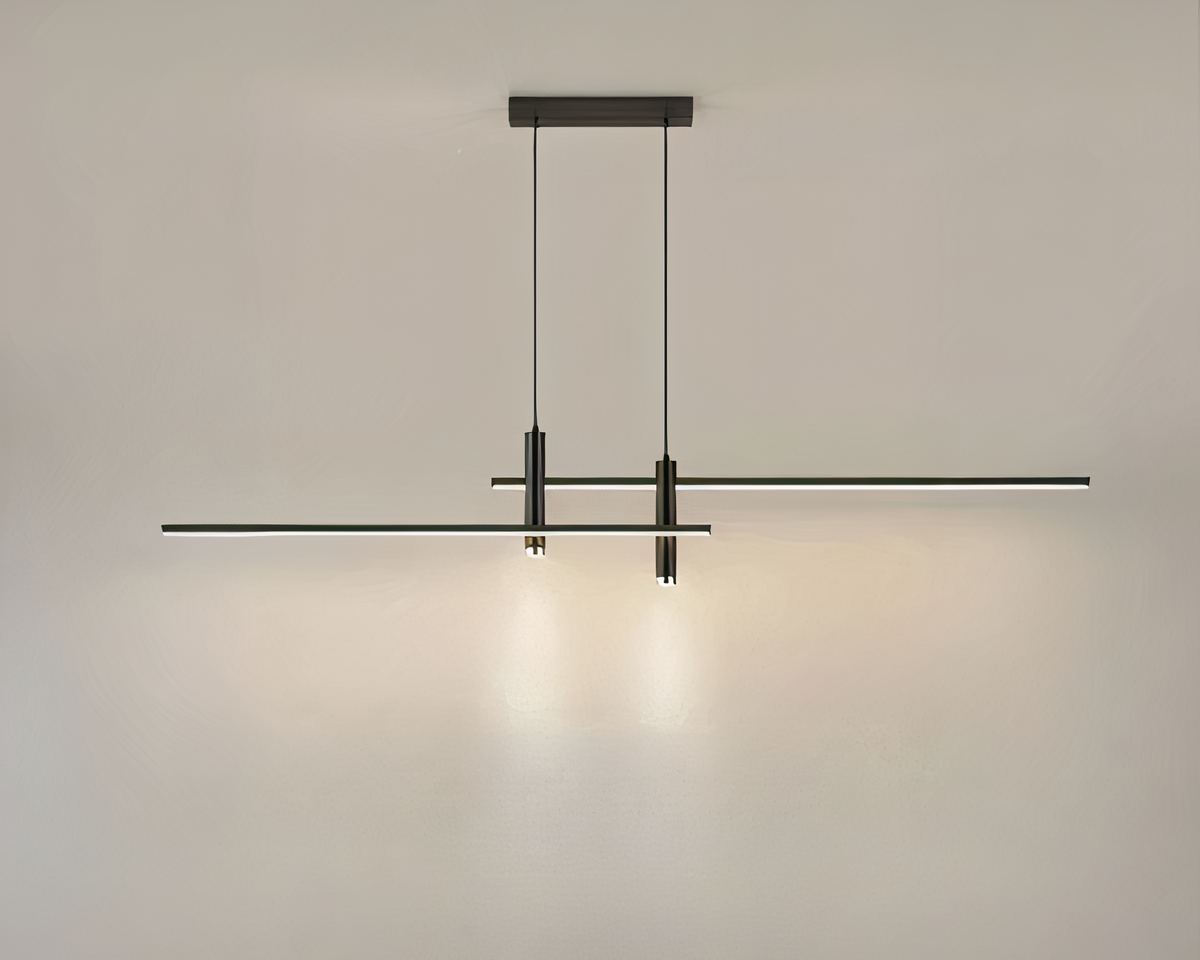 Transformez votre espace avec ce lustre barre au design contemporain en aluminium, disponible en noir et dorรฉ. Sa silhouette รฉpurรฉe et ses lignes minimalistes, avec deux barres horizontales superposรฉes et deux spots suspendus, offrent une impression de lรฉgรจretรฉ incomparable.