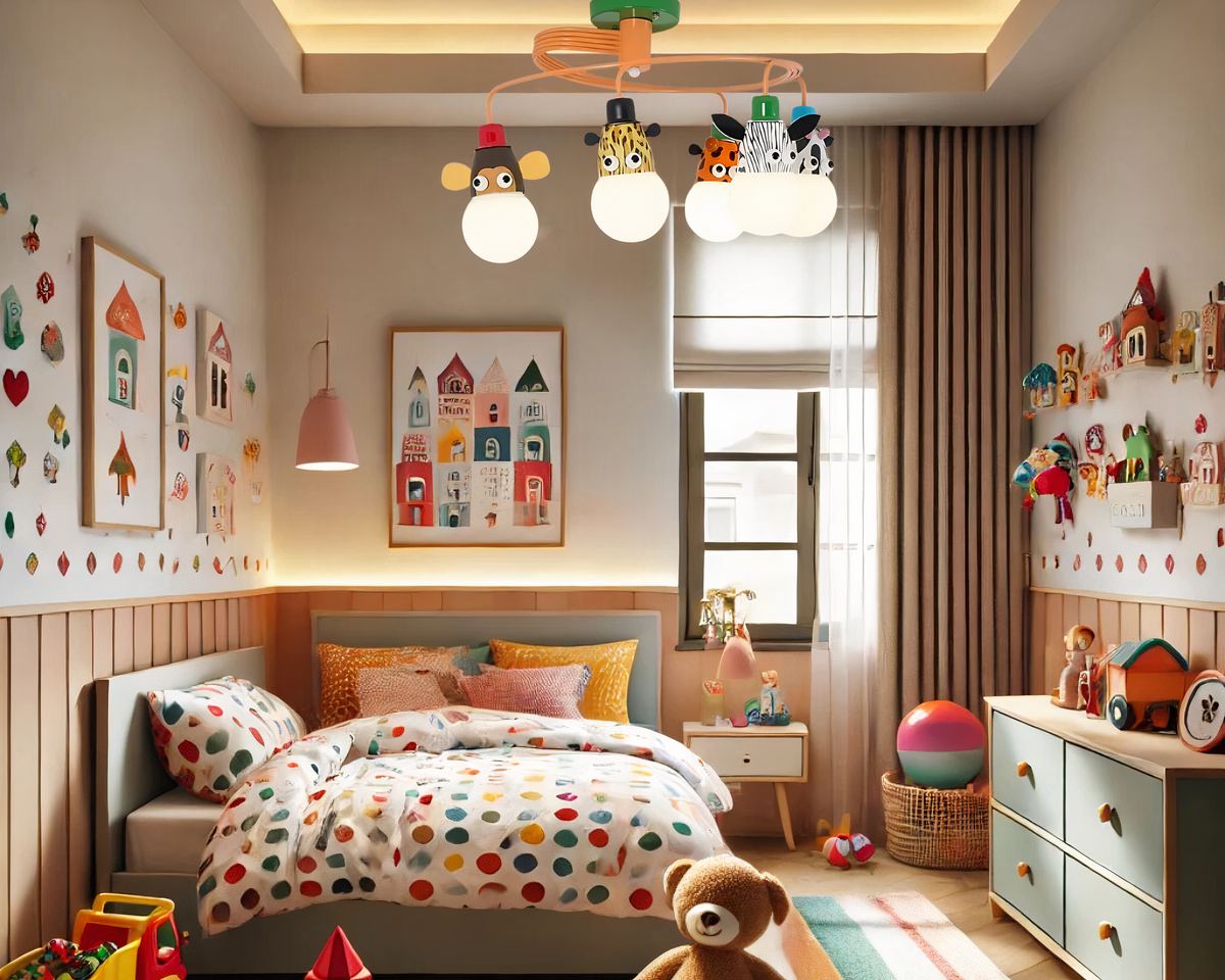 Vous aimez les décorations qui sortent de l’ordinaire ? Ce lustre est fait pour vous ! Chaque animal, soigneusement illustré, donne vie au plafond de la chambre, créant une atmosphère unique et ludique.