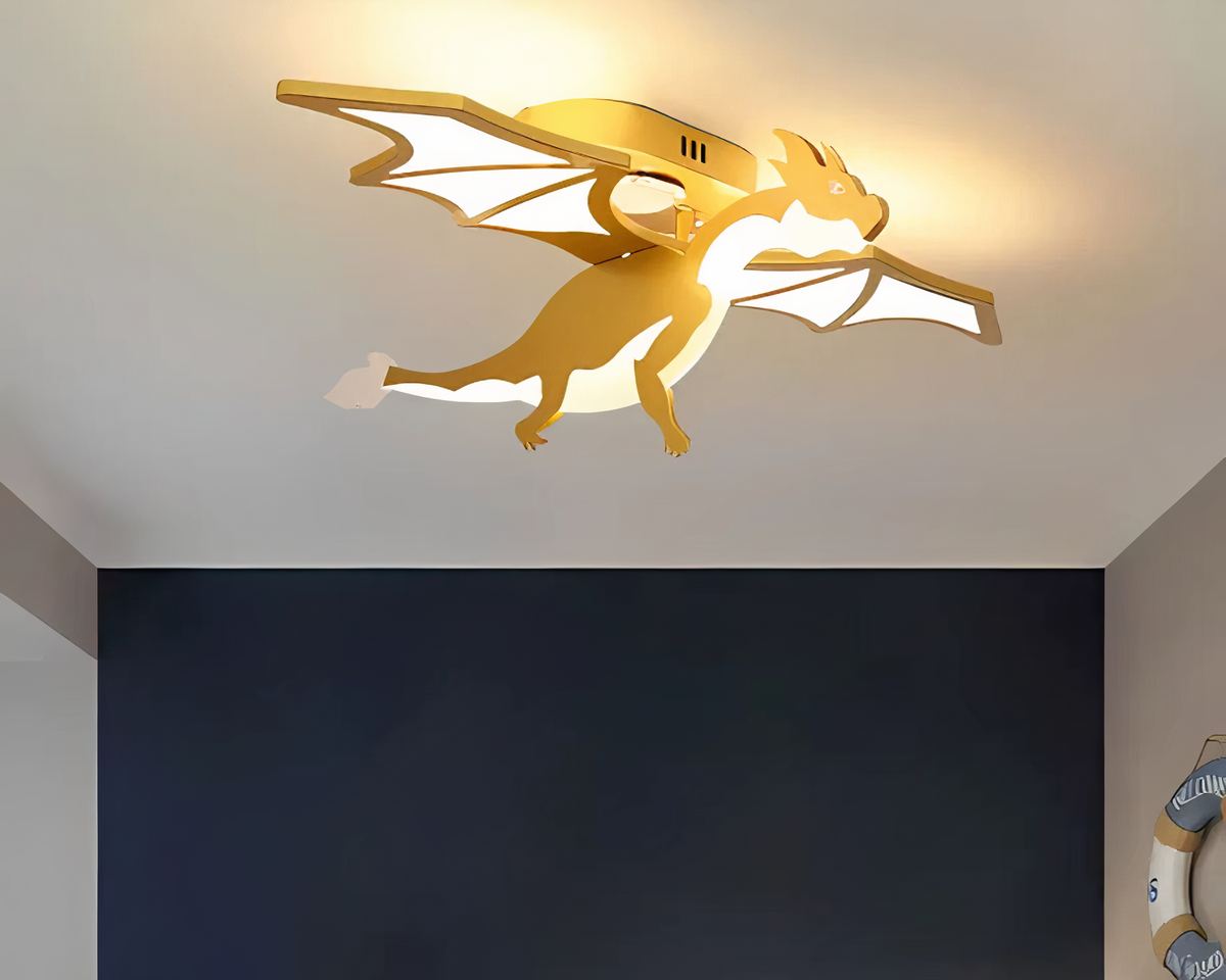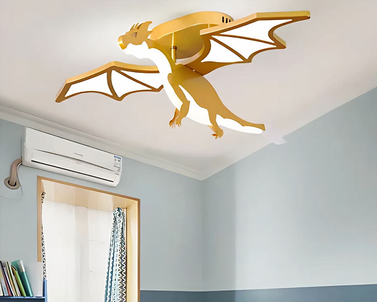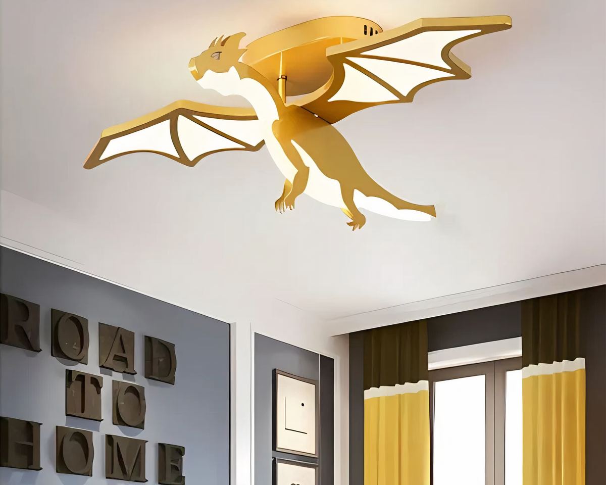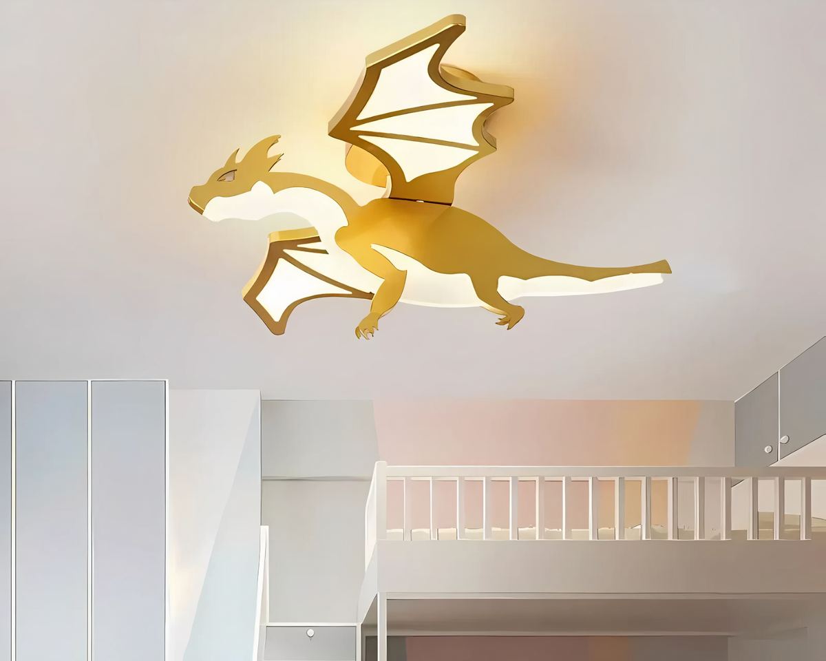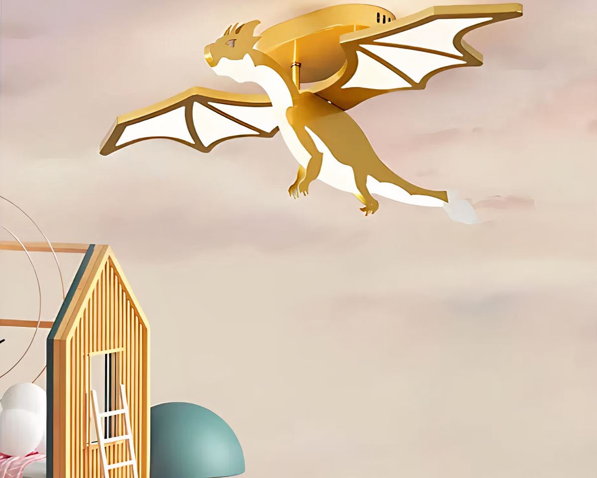Offrez à votre enfant un éclat unique avec ce lustre chambre garçon dragon doré, prêt à veiller sur ses nuits. Ses ailes déployées et son allure majestueuse font de ce plafonnier un véritable trésor, parfait pour créer une ambiance fantastique.