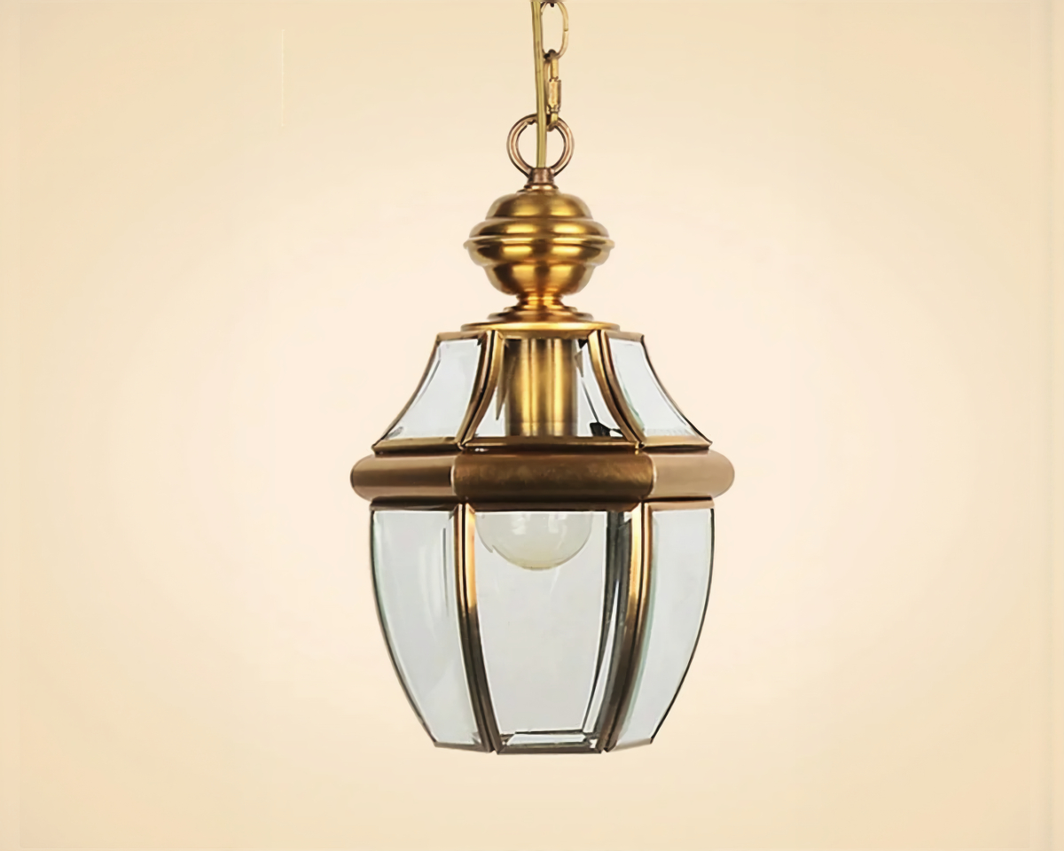 Ce luminaire séduit par son équilibre entre raffinement et simplicité. Ses lignes courbées, sa finition effet bronze patiné et ses panneaux de verre clair apportent une touche classique sans jamais alourdir la pièce.