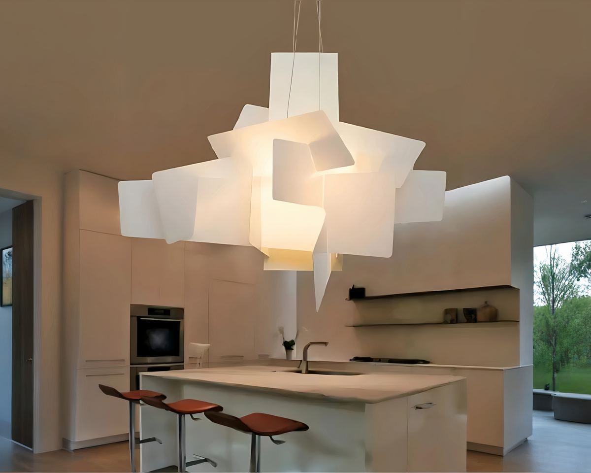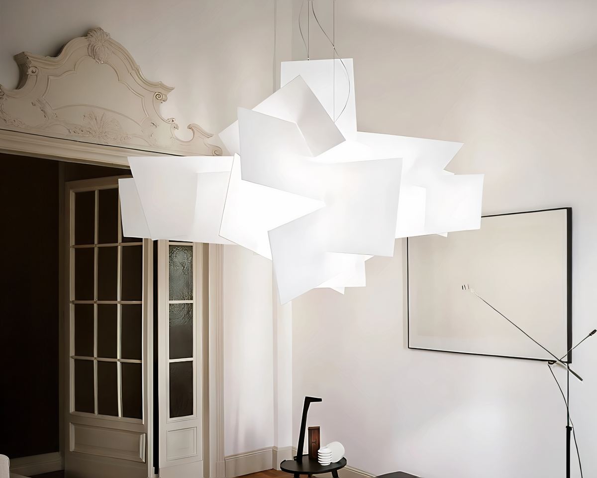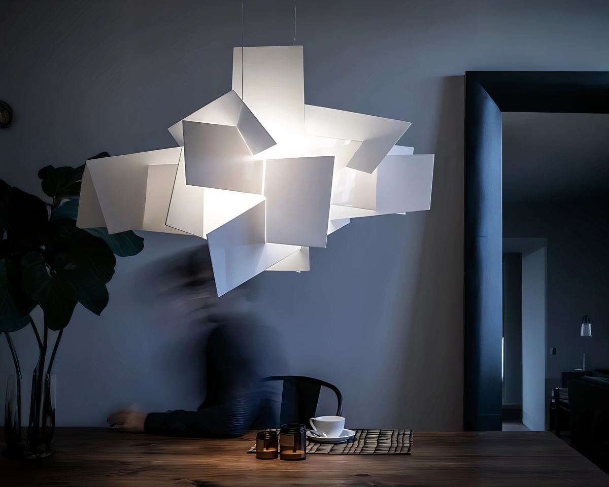 Ce lustre est bien plus quโun simple รฉclairage. Avec ses panneaux en acrylique entrecroisรฉs, il crรฉe un effet visuel unique, parfait pour les amateurs dโart moderne.