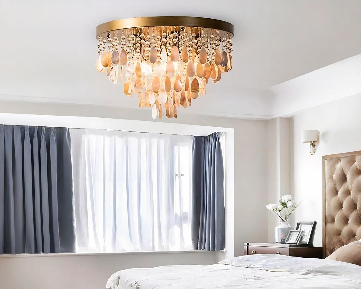 Plongez votre pièce dans une lumière douce et subtile grâce à ce lustre d’exception. Les coquillages naturels reflètent la lumière de manière harmonieuse, créant une ambiance accueillante et intime, parfaite pour des moments de détente ou de réception.