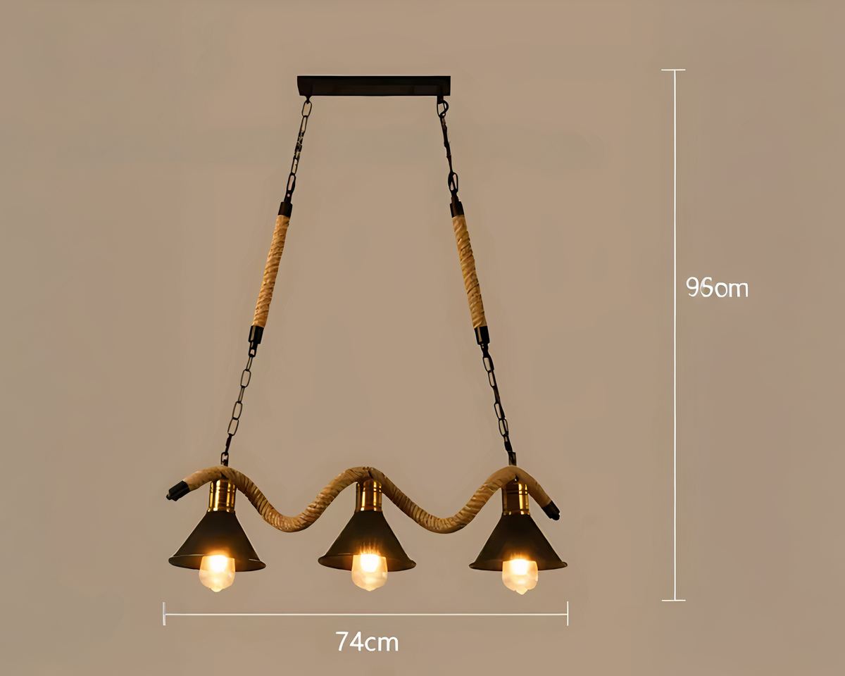 Ce lustre ร 3 suspensions combine le charme rustique de la corde naturelle avec lโesthรฉtique brute du mรฉtal noir pour un look authentique et industriel.