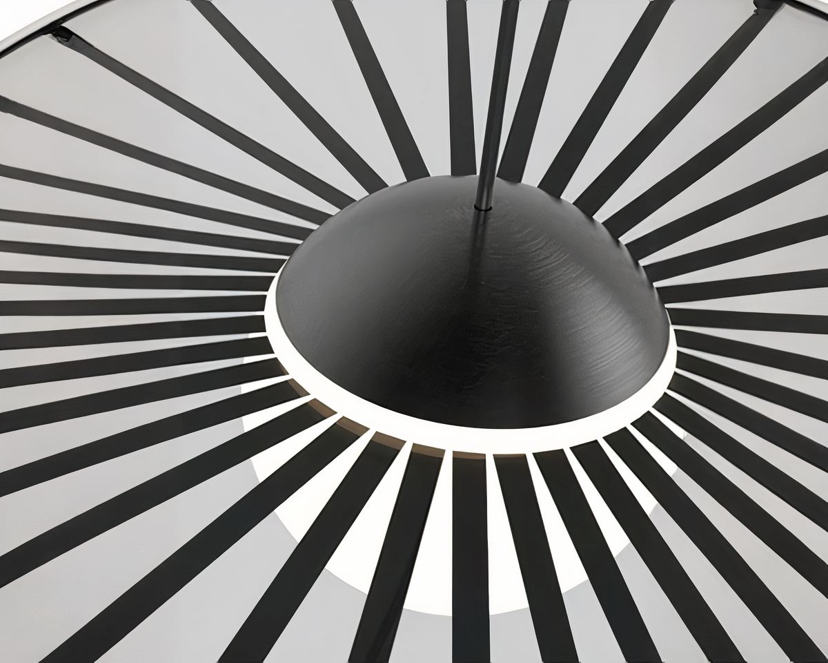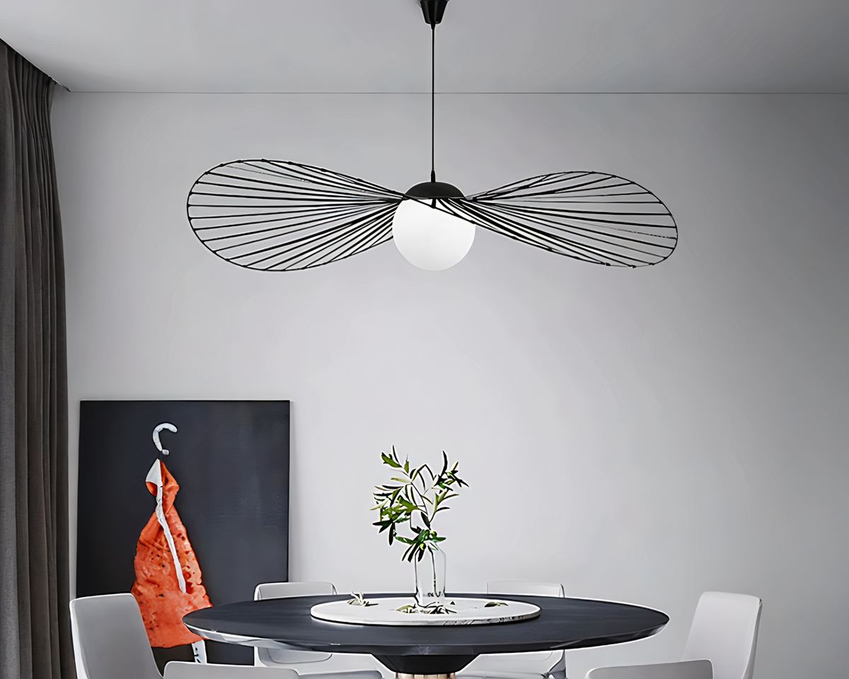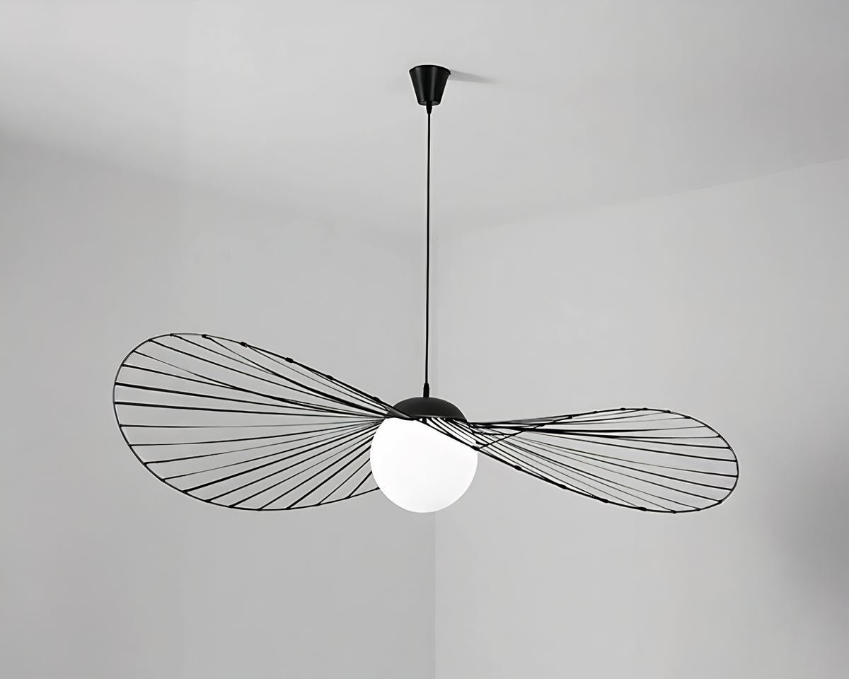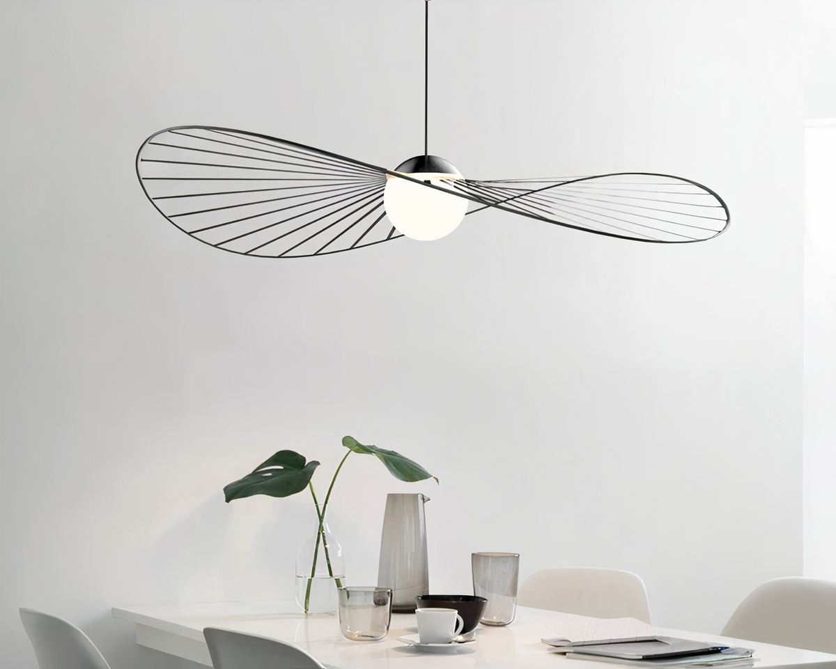 Le lustre vertigo en métal et tissu flotte avec légèreté, diffusant une lumière douce et envoûtante qui enveloppe votre espace d'une élégance aérienne. Ses pales finement tissées capturent la lumière et la transforment en un jeu subtil d'ombres et de mouvements hypnotiques.