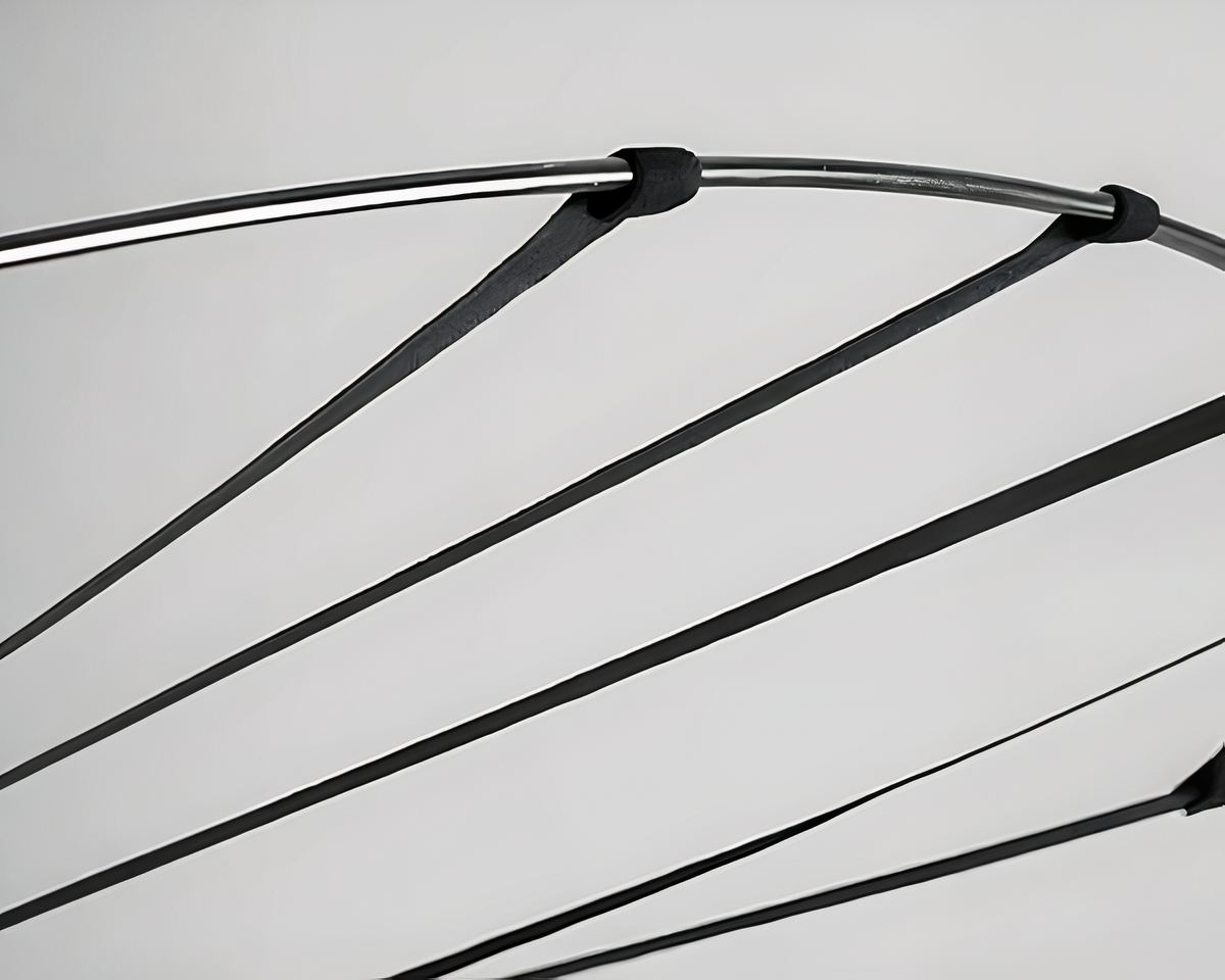Ce luminaire avec ses fines tiges métalliques et ses éléments en tissu forment une sculpture lumineuse délicate. Il s'adapte aussi bien aux grands espaces qu'aux pièces plus intimes grâce à son design ajustable.